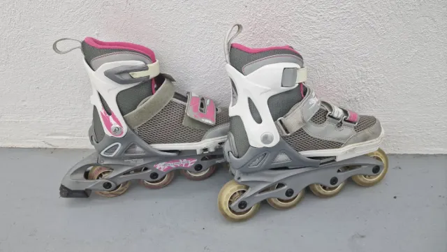 Detalles del productoPatines en línea diseñados para niñas, con un atractivo color gris y detalles en rosa.