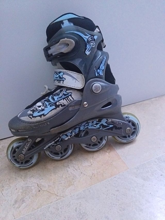 Detalles del productoPatines en línea con un diseño llamativo y detalles de calaveras.