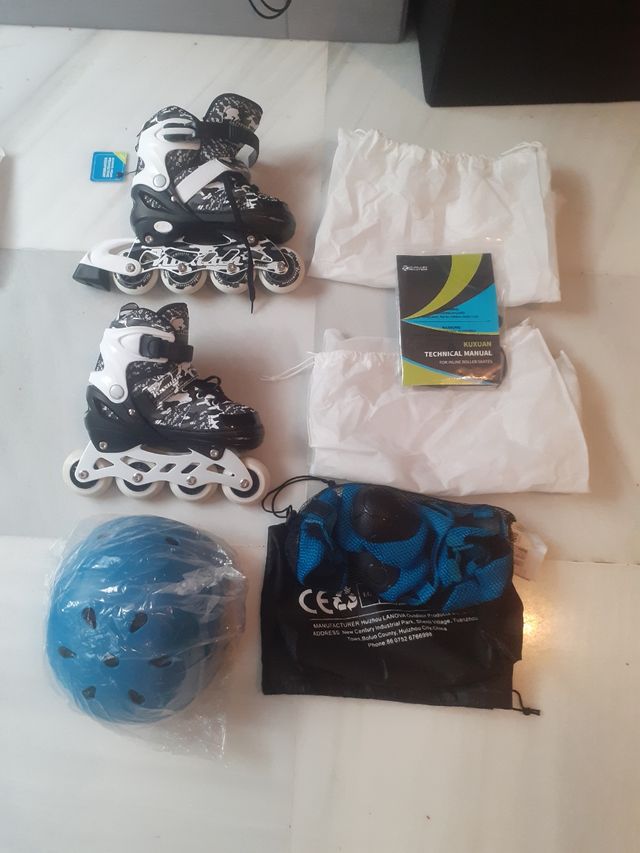 - incluye bolsas para guardar los patines y protecciones