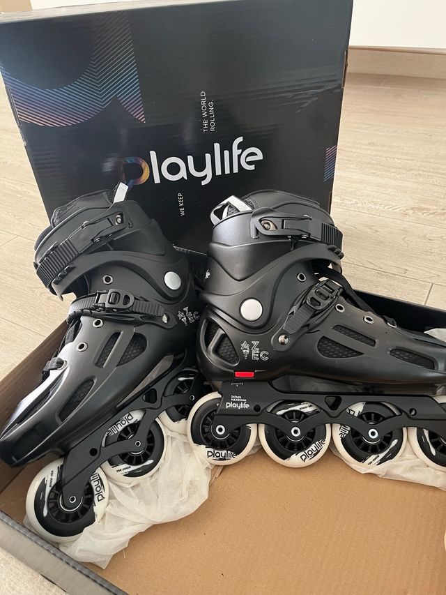 Detalles del producto-Se venden patines en línea de la marca Playlife en color negro.