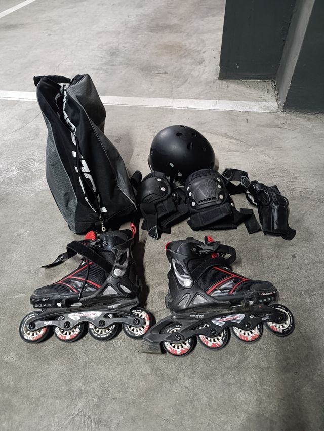 - Incluye dos patines, casco y protecciones (rodilleras, coderas y muñequeras).