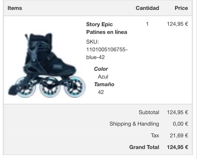 Patines en línea Story Epic en color azul, talla 41 (devolví el 42!)