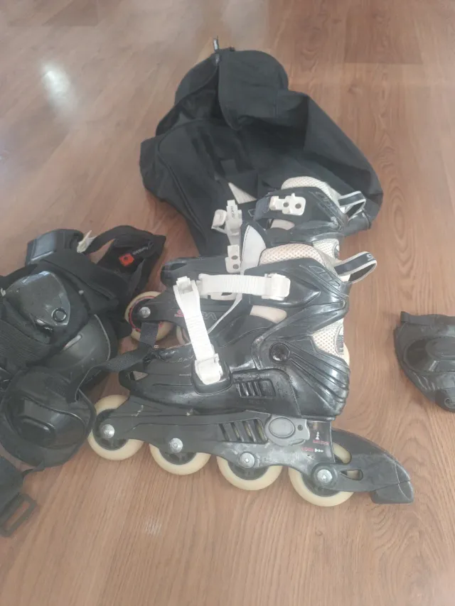 Detalles del productoSet de patines en línea ajustables para tallas 31 a 34, ideal para iniciarse en el patinaje. Incluye protecciones para mayor seguridad.