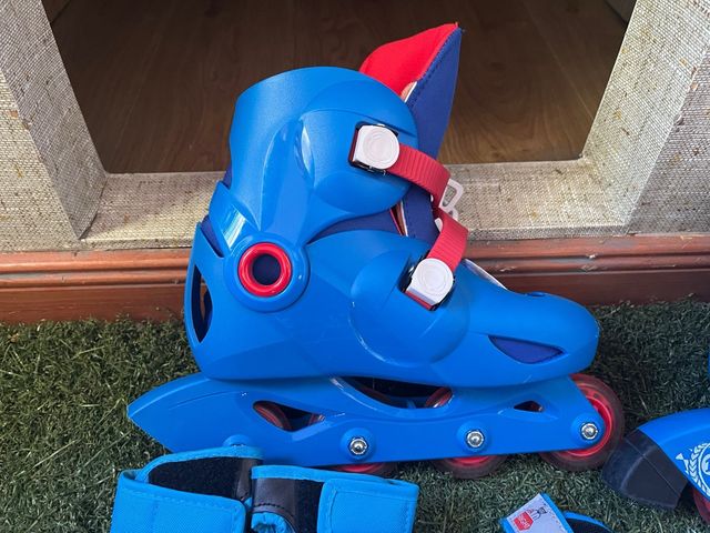 - Patines de color azul con detalles rojos.