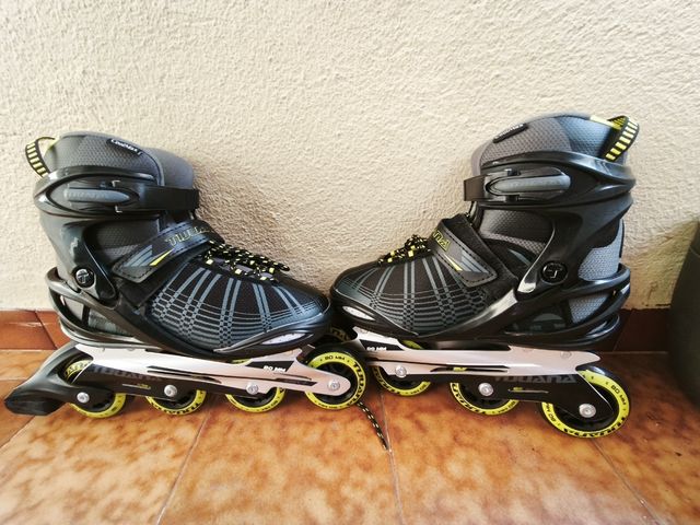 Detalles del productoPatines en línea en color negro y gris, detalles en amarillo, talla 40.