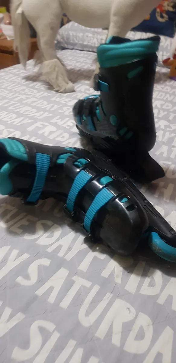 Patines en línea en buen estado, talla 44. - Diseño en negro y turquesa. - Cierres de velcro y hebilla.