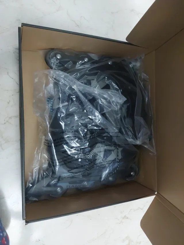 Patines en línea de color negro, talla 44. Listos para usarse. - Ruedas de poliuretano. - Cierre de velcro y hebillas. - Bota acolchada.