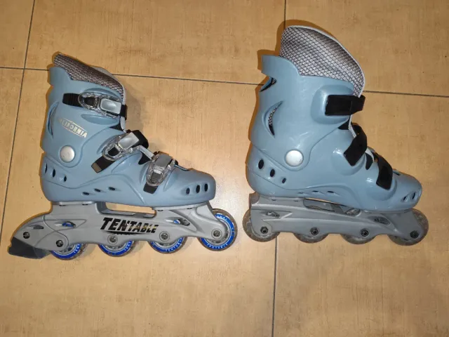 Detalles del productoSe venden patines en línea de color azul claro, marca TENTABLE, modelo California. Son ideales para iniciarse en el patinaje.