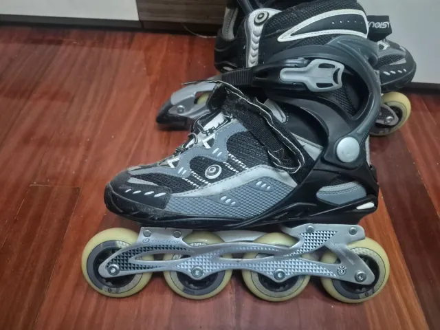 Patines en línea de la marca Topicnoisy en talla 40. Diseñados para patinaje. - Color gris y negro. - Cierre de velcro y hebilla. - Ruedas de poliuretano.