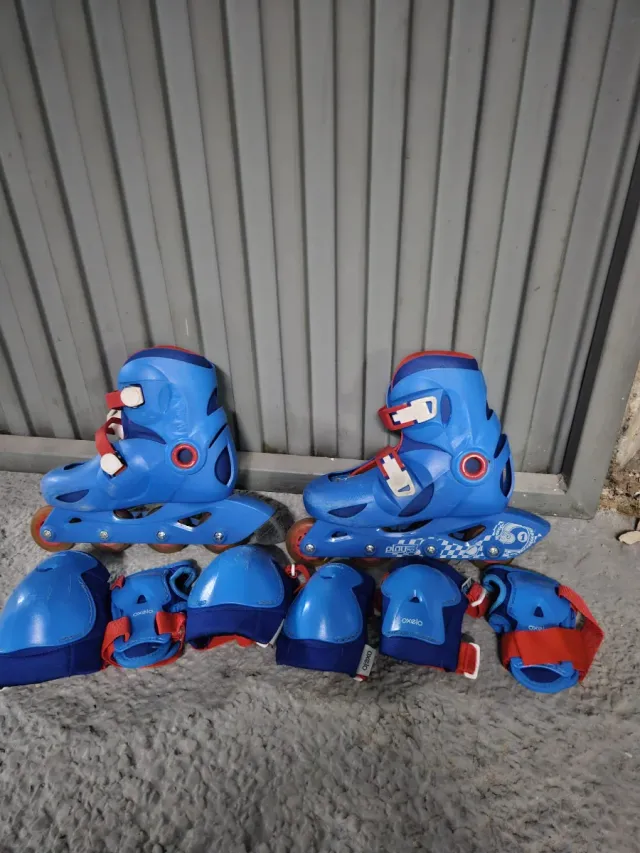 Detalles del productoSet de patines en línea y protecciones para patinar de forma segura. El conjunto incluye patines y equipo de protección.