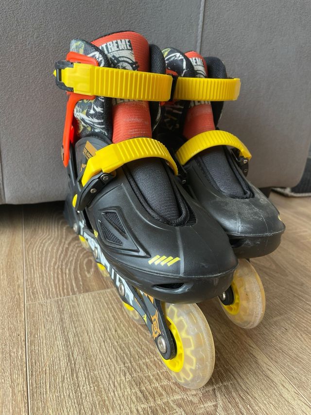 Detalles del productoPatines extensibles en color negro con detalles en amarillo y naranja. Perfectos para que los niños aprendan y se diviertan.