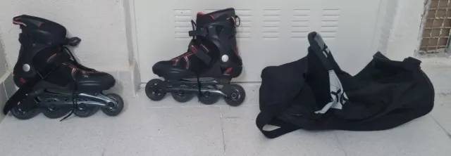 Detalles del productoSe venden patines en línea marca Fila, diseñados para fitness y uso masculino. El color principal es negro con detalles en rojo.