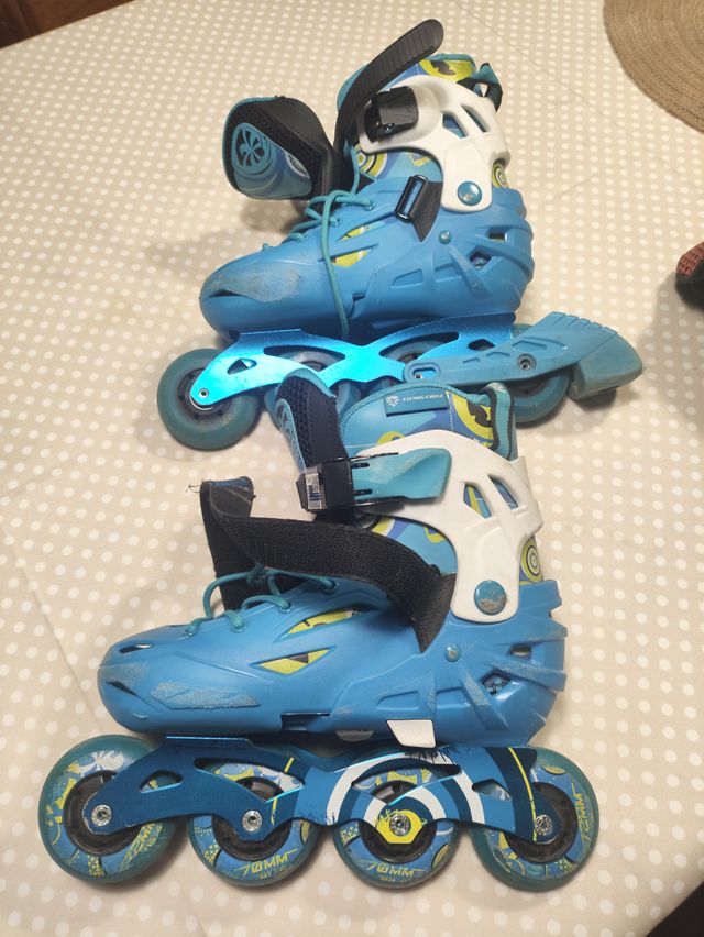 Detalles del productoPatines en línea de la marca Flying Eagle, ajustables en talla.