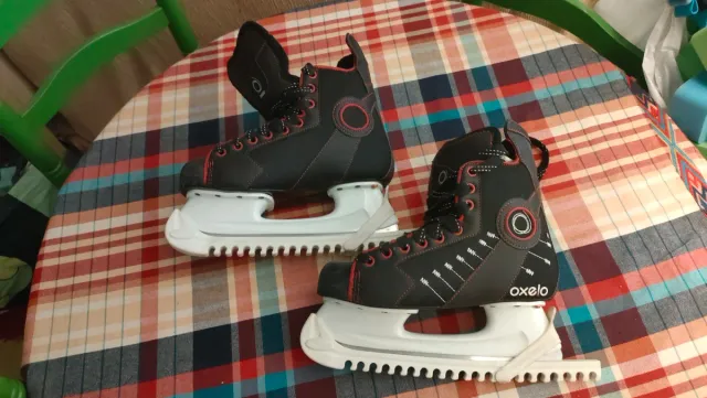 Detalles del productoPar de patines de hielo marca Oxelo en talla 40. Diseñados para ofrecer comodidad y soporte.