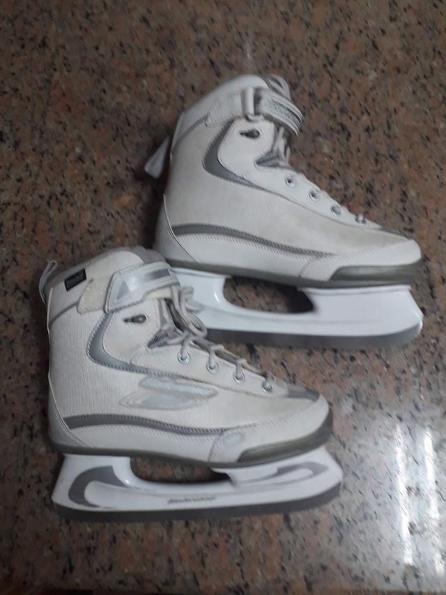 Patines de hielo en buen estado, talla 37.regalo protectores - Diseño en color blanco y plateado. - Cierre con cordones y velcro.