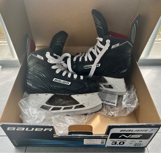 Patines de hockey sobre hielo marca Bauer para niños. - Modelo NS. - Talla 3.0 R. (36) - Color negro con detalles rojos.