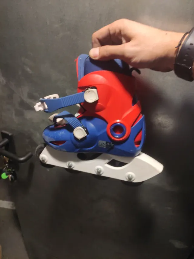Patines infantiles con un diseño llamativo en color azul y rojo con protecciones a juego.