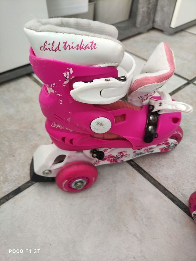 Detalles del productoPatines infantiles de color rosa, ideales para los más pequeños. Son ajustables para adaptarse al crecimiento.talla 25 a 28 ajustable.