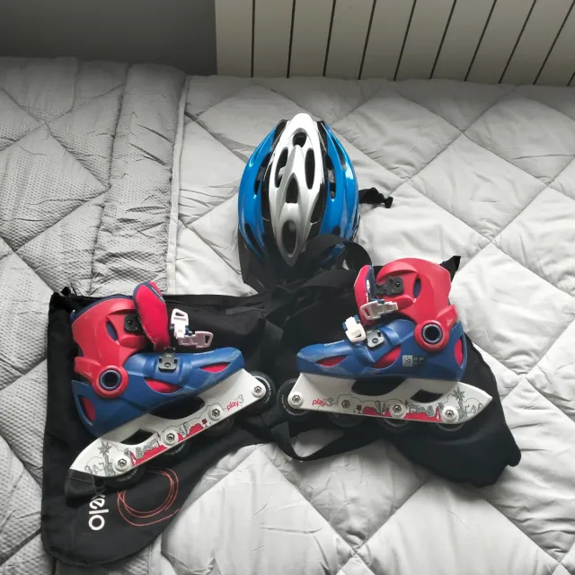 Detalles del productoConjunto de patines para niños, incluye casco y protecciones.