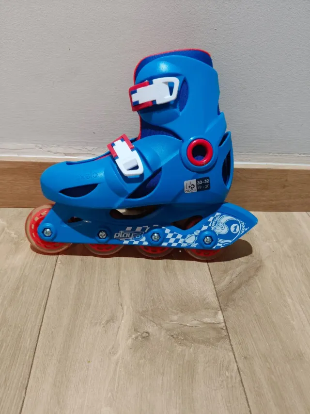 Patines en línea de color azul para niños, talla 30-32. Perfectos para iniciarse en el patinaje. Se han puesto y quitado al instante una vez