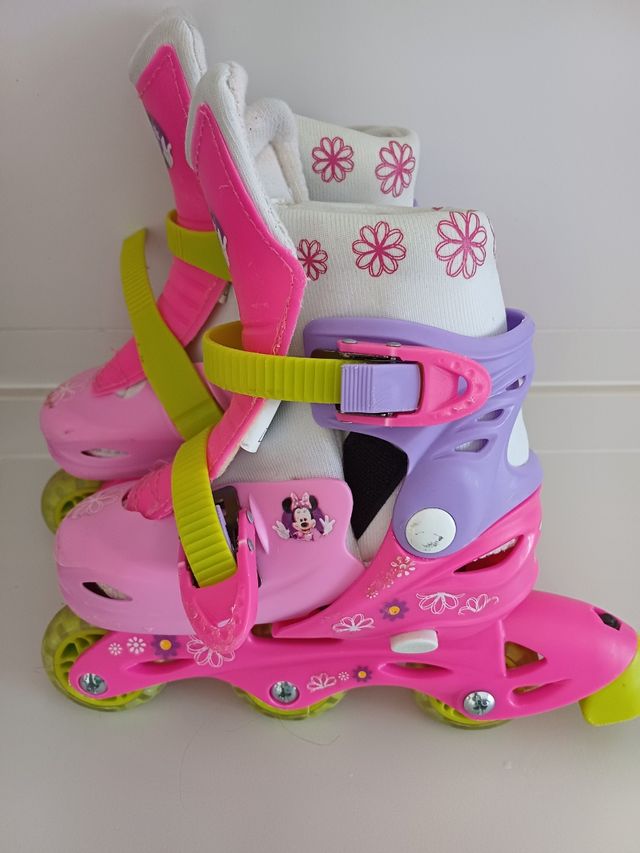 Patines infantiles Disney Minnie-Mouse Bow-tique. Se ajusta desde el numero de pie 27 al 30. 3 ruedas en linea. 15 euros precio no negociable ( nuevos 45)