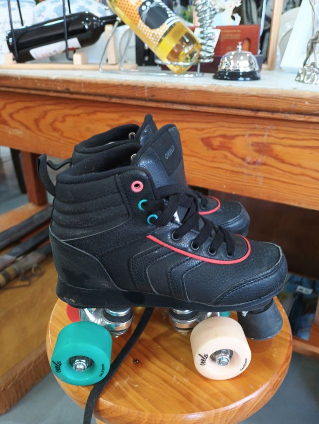 Detalles del productoPatines de niño de la marca Oxelo, diseñados para patinaje recreativo.