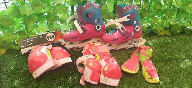 Kit completo de patines del número 30-32, con sus calcetines y protecciones al completo.