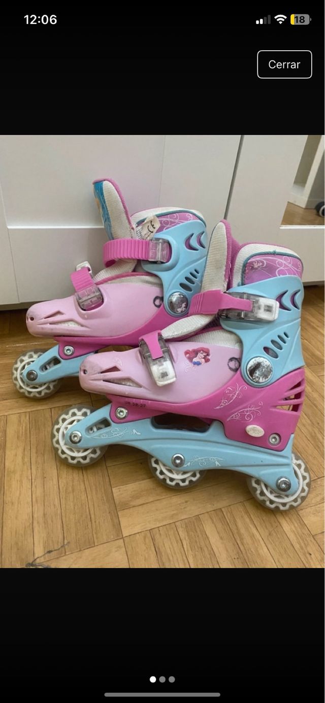 Detalles del productoPatines de niña en colores rosa y azul, con un diseño divertido. Usados pero en buen estado. Talla 28/29.