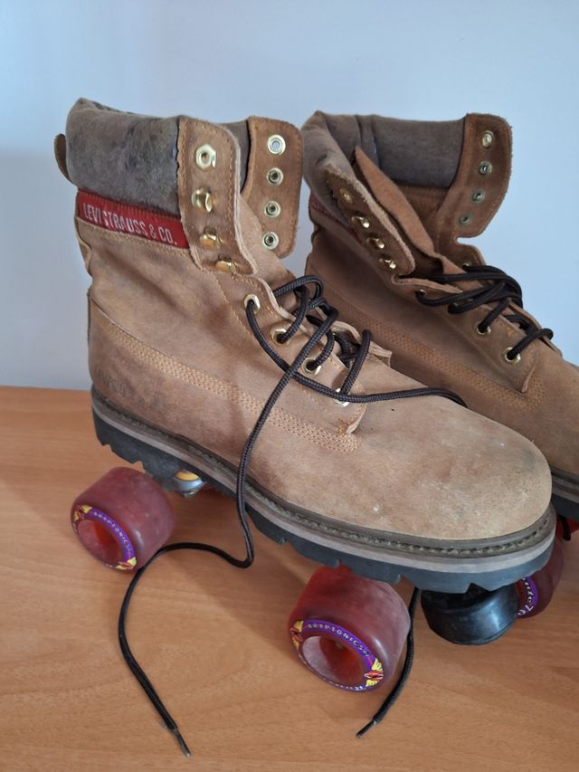 Detalles del productoPatines clásicos de la marca Levi's Strauss & Co. Ideales para un look retro. Los mejores componentes, plsntolla de salto, ruedas y frenos de hockey, rodamientos de precisión,se compro tope de gama, botas levis del 47