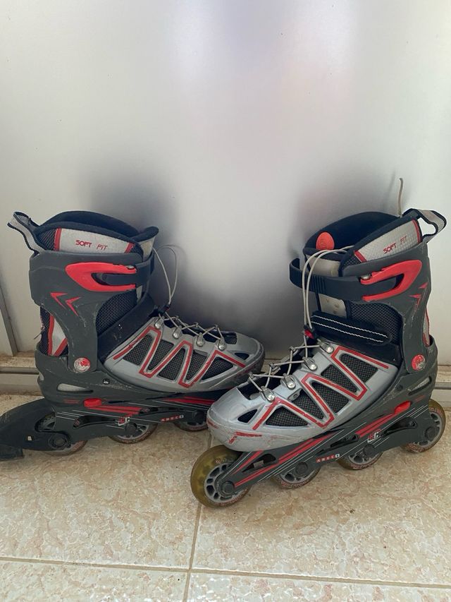 Talla 37-40. Están usados y por eso tienen algunas marcas del uso, pero cumplen con su función a la perfección y las ruedas están en buen estado.