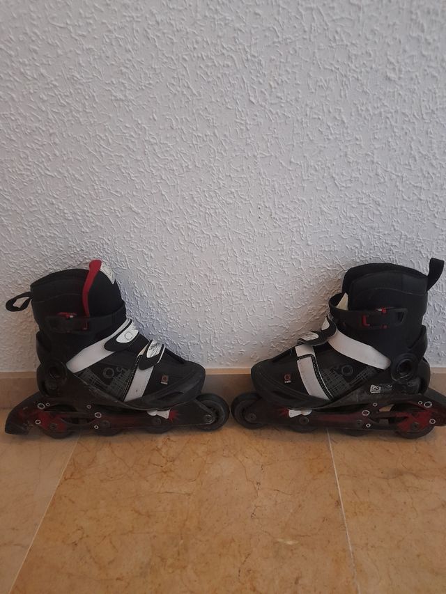 Detalles del productoPatines en buen estado, talla 36-38. Solo unos rasguños como se ve en la foto. Se regala bolsa de transporte y casco. Medidas del producto