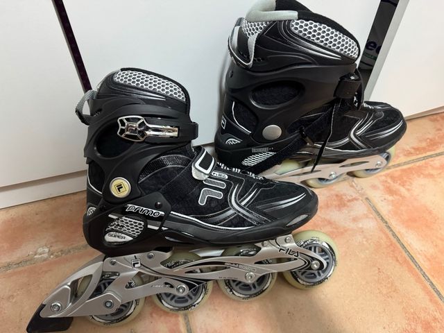 Patines Línea Adulto marca FILA, SOLO 1 USO! Estan practicamente sin usar. Talla 42,5 Funda/mochila para guardar incluido.