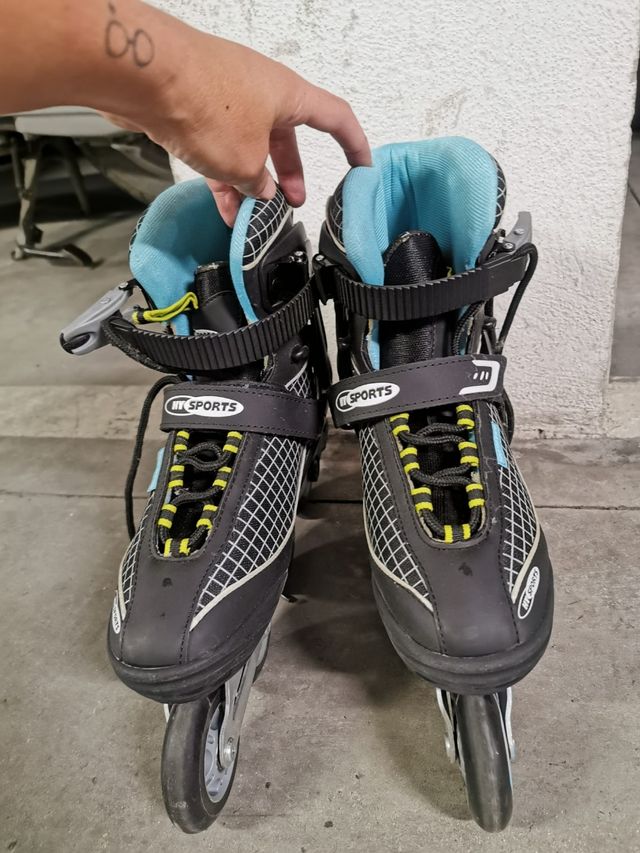 Patines en línea para adultos, en buen estado. Ideales para principiantes. - Marca: HY Sports - Color: Negro y azul claro - Talla: 40 - Totalmente nuevos