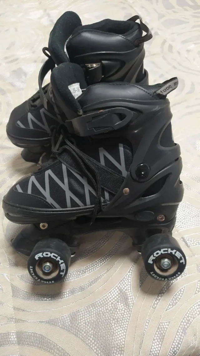 Detalles del productoPatines de cuatro ruedas en color negro, marca Meteor Rocket. Perfectos para iniciarse en el patinaje.