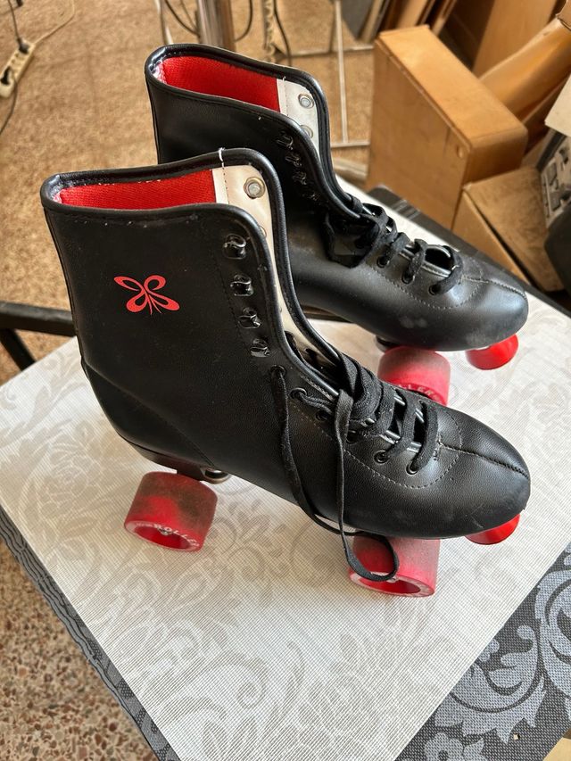 Patines negros con ruedas rojas