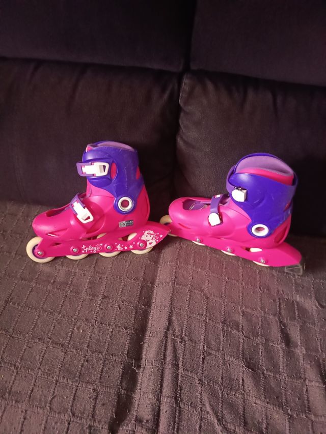 Detalles del productoPatines en línea rosas y morados para niña. Están en buen estado y son ideales para principiantes.