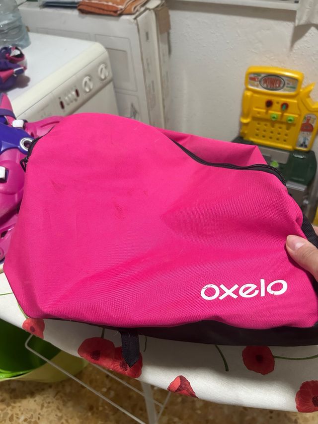 Prácticos patines para niña de la marca Oxelo. - Color rosa. - Diseño infantil. - Talla 30 32 - Casco -Bolsa - Coderas , rodillero y protección para las manos.