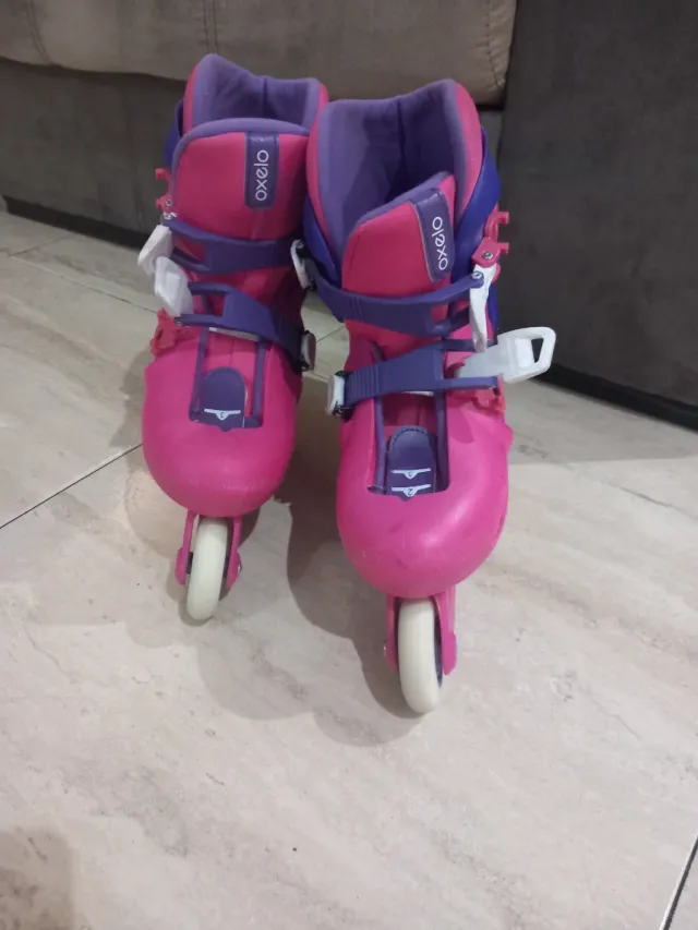 Detalles del productoPatines infantiles de la marca Oxelo en color rosa y morado.