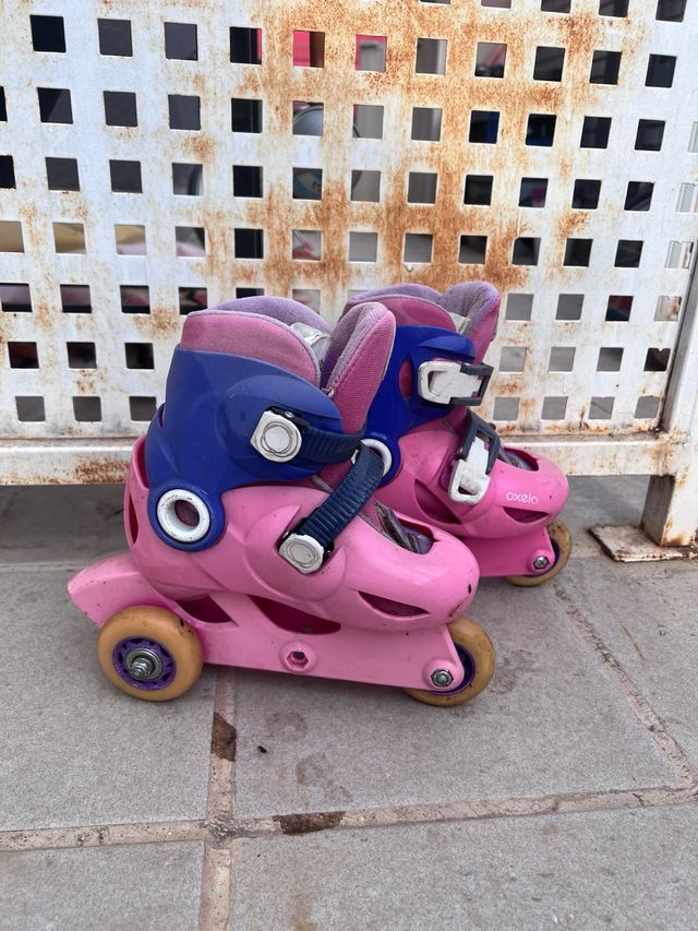 Patines en línea para niña, talla 32. Color rosa y azul. - Marca Oxelo. - Cierre con velcro y hebilla.