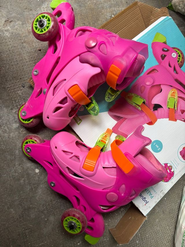 Detalles del productoPatines en línea para niña, color rosa. Están en buen estado y son ajustables.