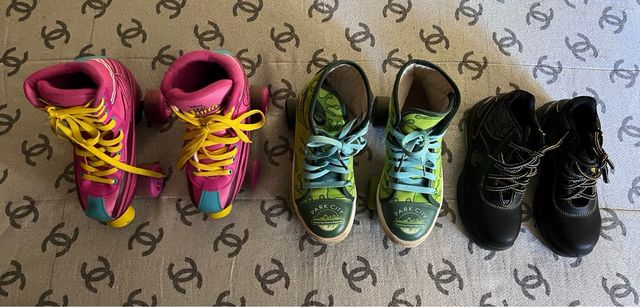 - Patines de color verde con cordones azules y diseño 'Park City'.