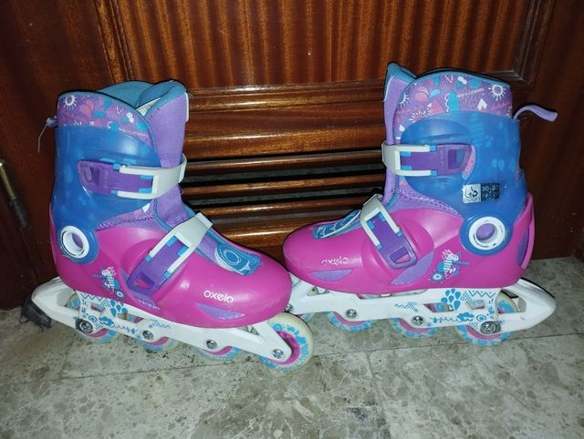 Buen estado, junto con protectores, para más pequeña y mayor, y casco. También mochila para guardarlo todo.