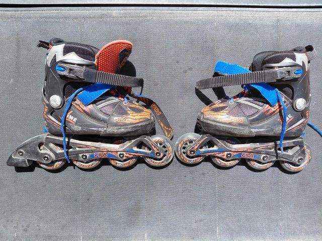 Ses venden patines niño marca Fila talla 32-35. Incluye bolsa Boomerang para guardarlos y kit protecciones mostrados en las fotos.