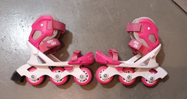 Detalles del productoPatines en línea de color rosa, ideales para los más pequeños que se inician en el patinaje. Diseñados para ofrecer estabilidad y comodidad.