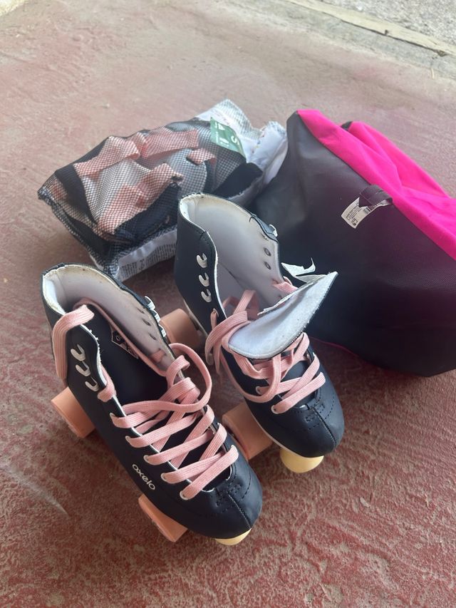 Detalles del productoPatines Oxelo prácticamente nuevos, ideales para principiantes. Se incluyen una práctica bolsa de transporte y protectores.