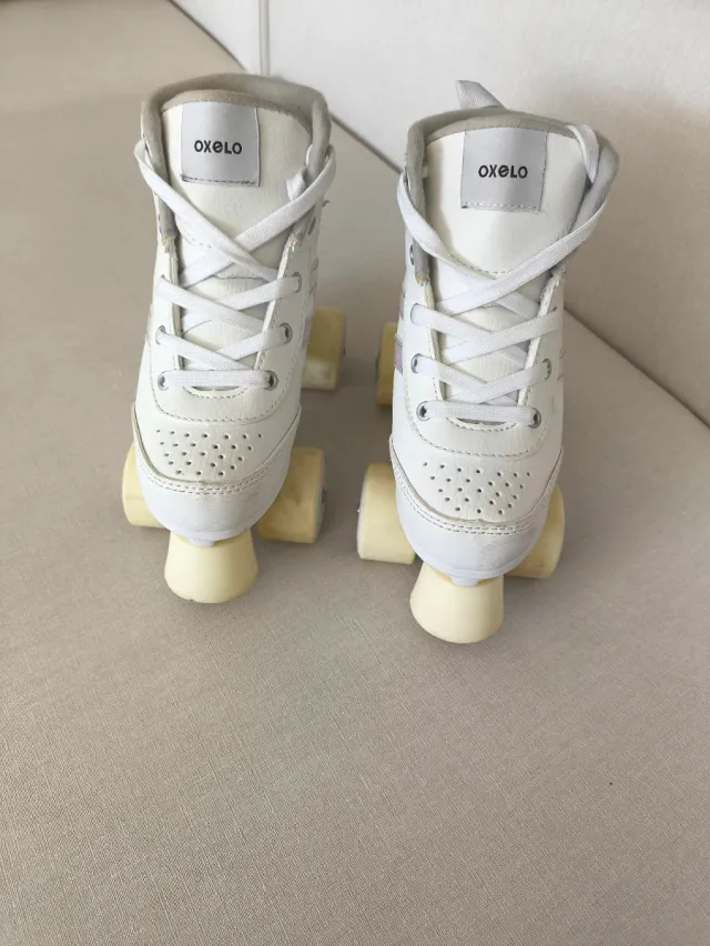 Detalles del productoPatines de cuatro ruedas de la marca Oxelo en color blanco.