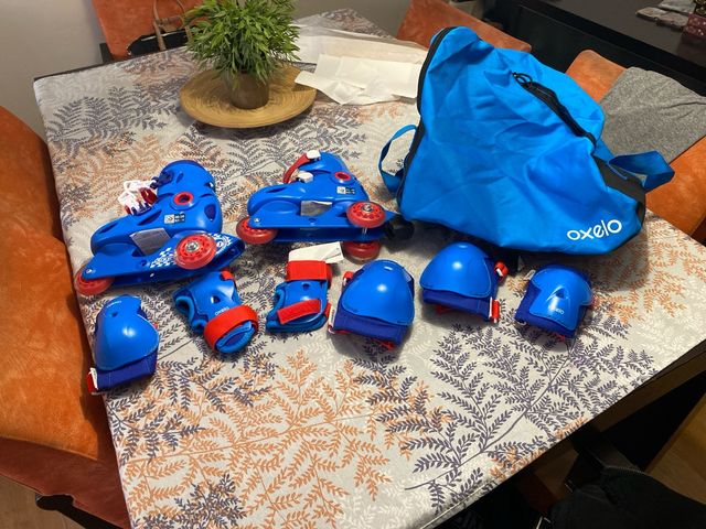 Detalles del productoSet completo de patines en línea Oxelo para niños, ideal para iniciarse en el patinaje. Incluye todo lo necesario para patinar de forma segura.