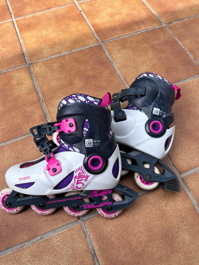 Detalles del productoPatines en línea Oxelo Play 5, talla 32-34. Están en muy buen estado y son ideales para principiantes.