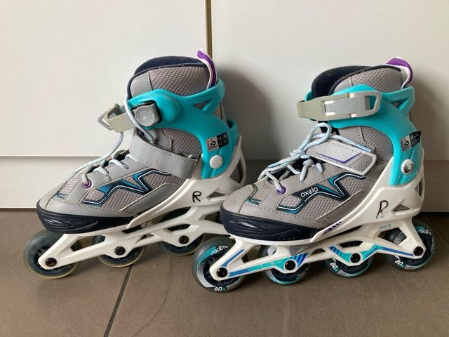 Patines en línea Oxelo Decathlon, talla 35-38. Ideales para principiantes. - Color gris y turquesa. - En buen estado. - Dos patines incluidos.