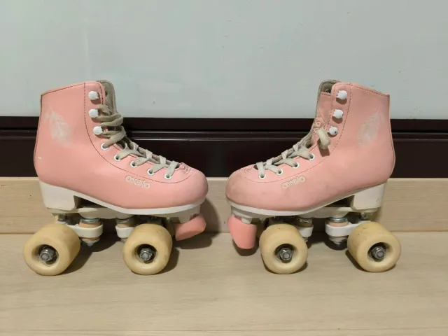 Detalles del productoPatines artísticos Oxelo de Decathlon en color rosa, talla 31. Perfectos para iniciarse en el patinaje.